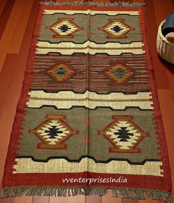 Hand block Printed Rug, Hand woven Rug, Handmade Rug,, Large Rug, Door Mat Floor Area Rug, Decorative Rug, Indian Duri Carpet